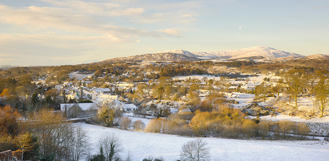 Located in County Tyrone, the Sperrins are further inland than other major ranges in Northern Ireland, leading to more frequent and significant snowfall in winter. Travel conditions through Glenshane Pass can often be challenging but you’ll see some gorgeous scenery.